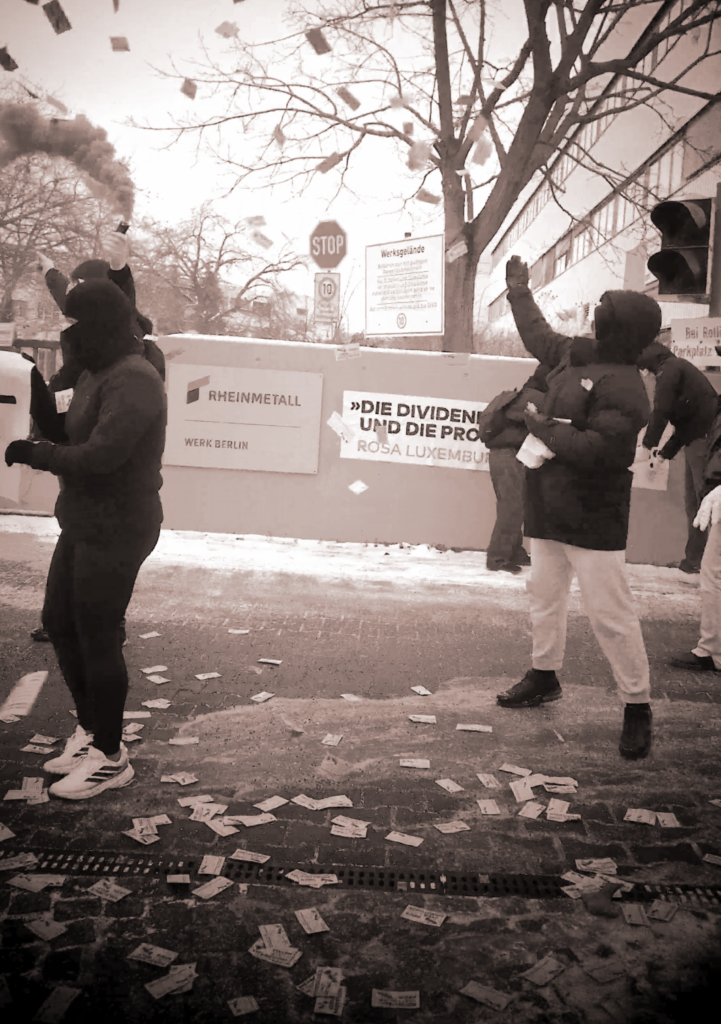 Am Freitag Nachmittag haben Antimilitarist:innen einer neuen Produktionsstätte des Rüstungsriesen Rheinmetall im Berliner Wedding in diesem Sinne einen Besuch abgestattet.