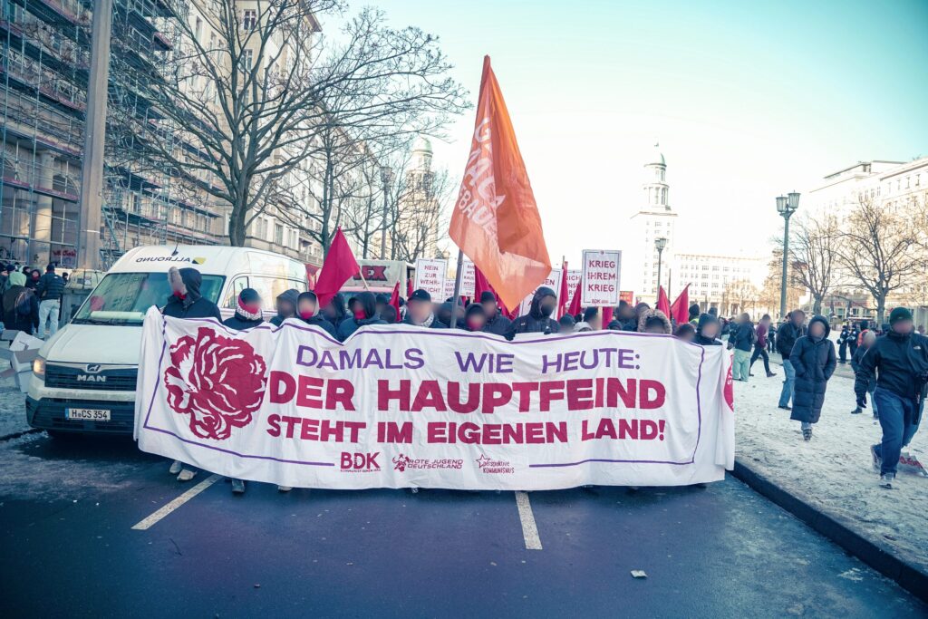 Die Demo am Sonntag war mit über 10.000 Teilnehmer:innen gut besucht. Gemeinsam mit dem Bund der Kommunist:innen aus Berlin und der Roten Jugend Deutschland organisierten wir den revolutionären Block, der mit über 1500 Teilnehmer:innen deutlich größer war, als im vergangenen Jahr. Unterstützt und verstärkt wurden wir von zahlreichen weiteren Strukturen und Genoss:innen aus dem gesamten Bundesgebiet.